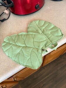 Join Logan to make pot holders shaped like leaves. You can get creative with colors and fabric. Use bias tape to finish the project. Use a home sewing machine to quilt designs in the leaves.